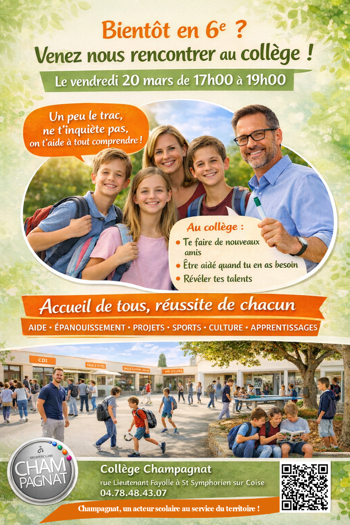 Le Groupe scolaire Champagnat Saint Symphorien sur Coise ouvre ses portes et accueille les familles pour découvrir ses formations, ses équipes et son projet éducatif.